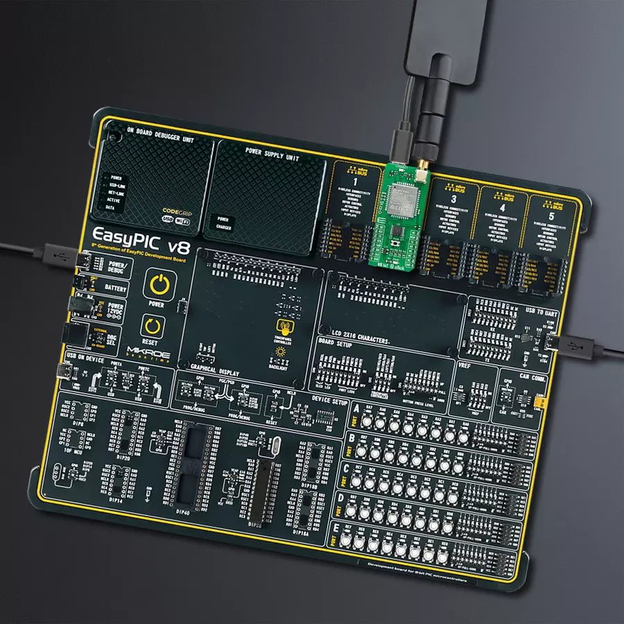 基于字符的LCD)和几种不同的DIP插座。这些插座覆盖了从最小的只有八个至四十个引脚的8位PIC MCU的广泛范围。EasyPIC v8 是Mikroe快速开发生态系统的一个组成部分。它由Mikroe软件工具原生支持,得益于大量不同的Click板™(超过一千块板),其数量每天都在增长,它涵盖了原型制作和开发的许多方面。